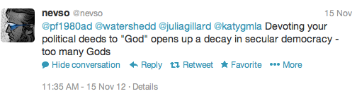 Last week one comment on twitter to some of the Blak and Black crew resulted in considerable discussion about the underlying intent of this wee blog. The commenter, apparently thinking that Bakchos was proselytizing in his post A Hypocrite for a Prime Minister, a Hypocrite for a Chief Minister, fired off this somewhat surprising reply: