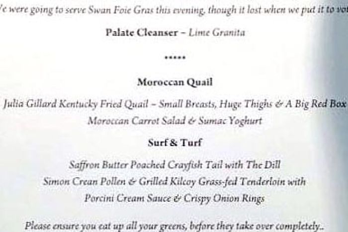 Both sides of mainstream politics are leaving me under-whelmed in the lead up to the Federal election. We have a Liberal Party who create a menu with sexually demeaning descriptions of the nation’s first female Prime Minister. Name calling and derisive comparisons are part of the argy-bargy of political life, as evidenced by the similarly derisive comparisons of Tony Abbott’s ears and privates clothed in nothing more “budgie-smugglers” by numerous political cartoonists. The problem here is when the derision is driven by the politicians themselves, when professional courtesy between colleagues, whether you like them or not, goes out the window. In any other workplace such bullying and harassment would be grounds for dismissal. Really Tony, how do you expect voters to respect a party that engages in the sort of sexist display usually reserved for the likes of the tabloid press?