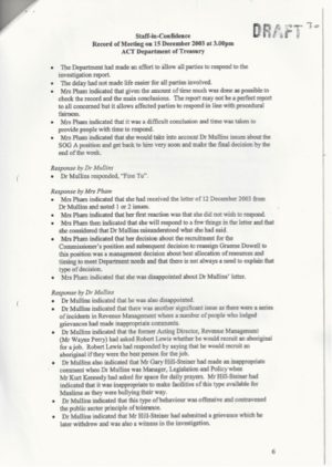 Email from Director Corporate Services Meredith Whitten to Tu Pham noting the Indigenous Commissioner for ACT Revenue's complaints of racism, dated 15 December 2003.